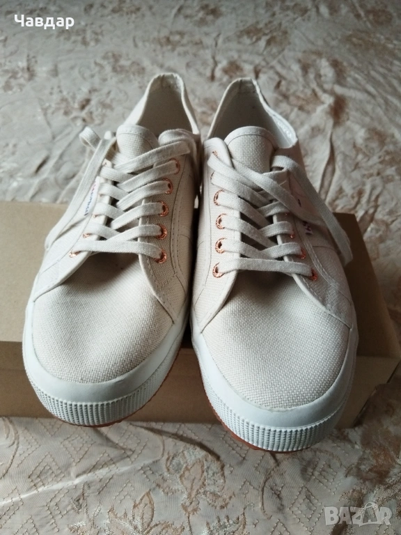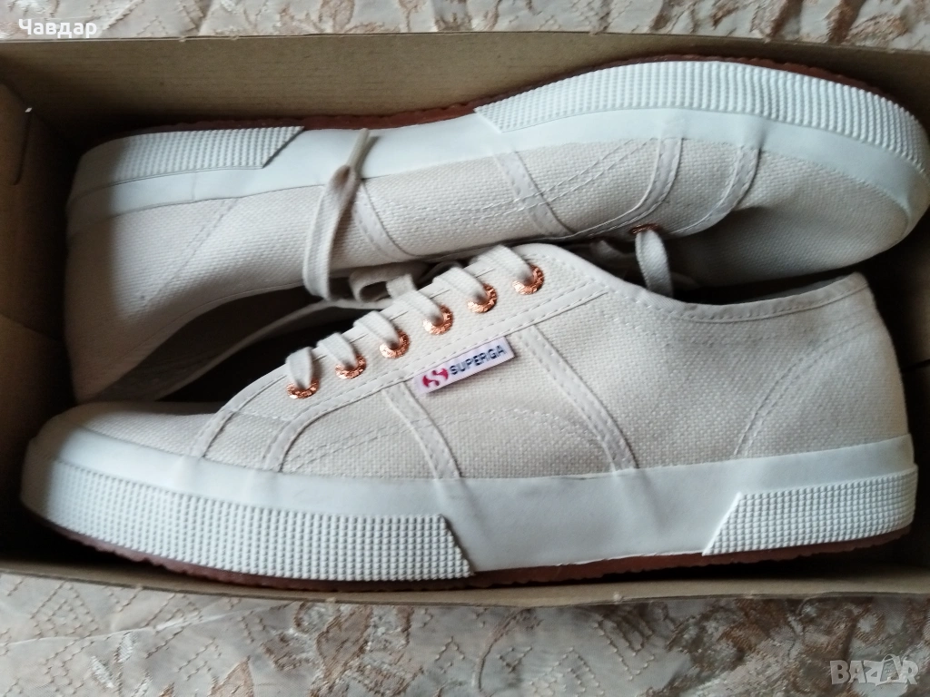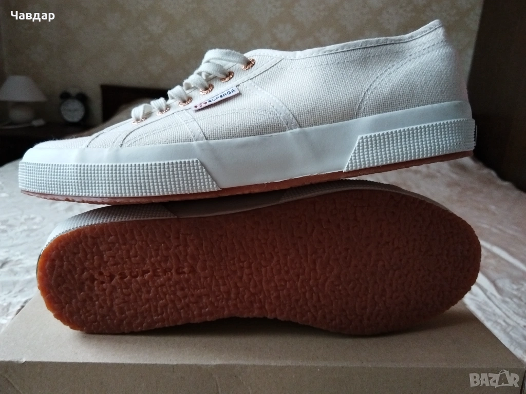 Кецове SUPERGA Cotu Classic. Цвят - бял/"слонова кост", материал - текстил. Размер по етикет - 44,5, стелка - 28,5 см. Състояние - НОВИ. Цена - 30 евро (не подлежи на коментар).
