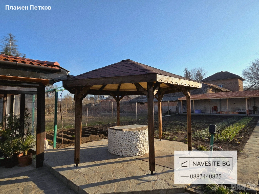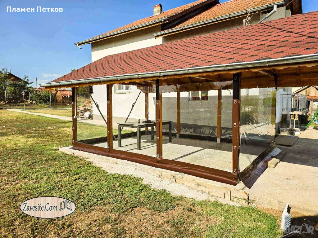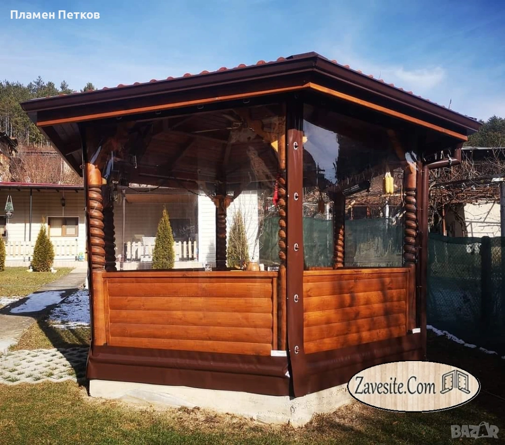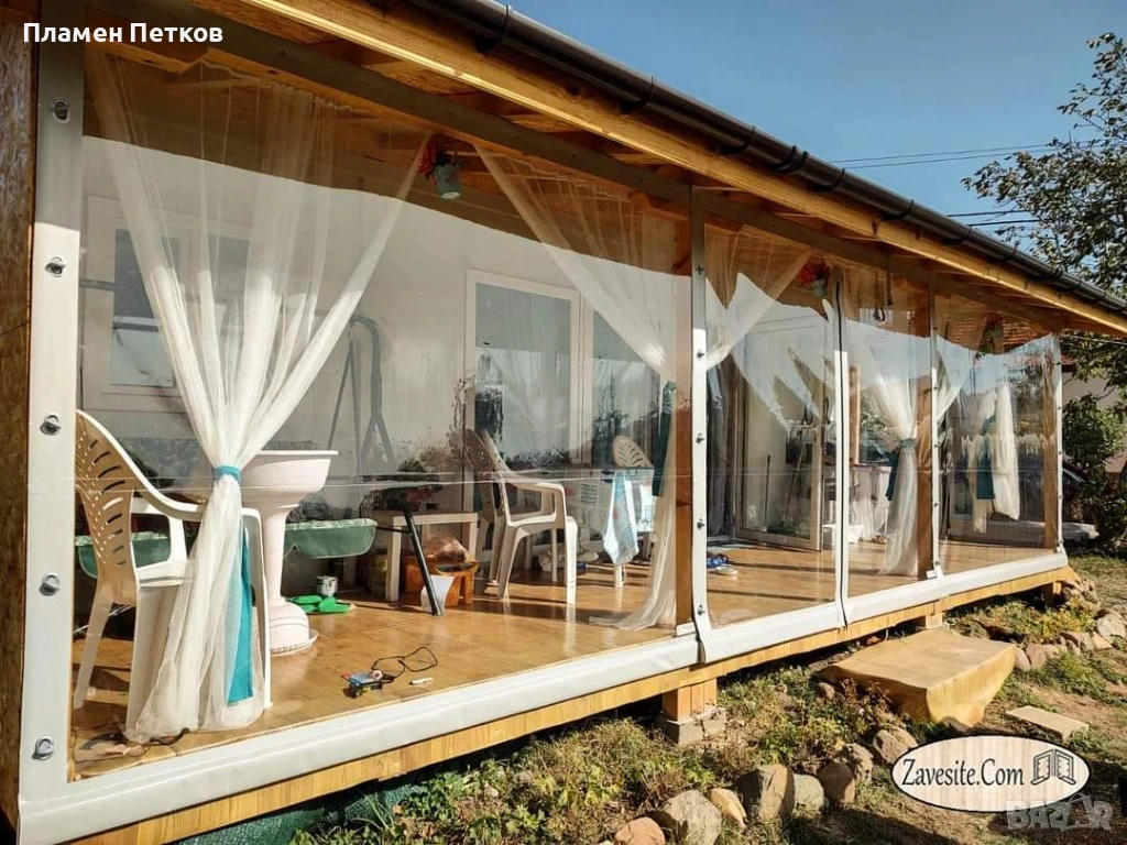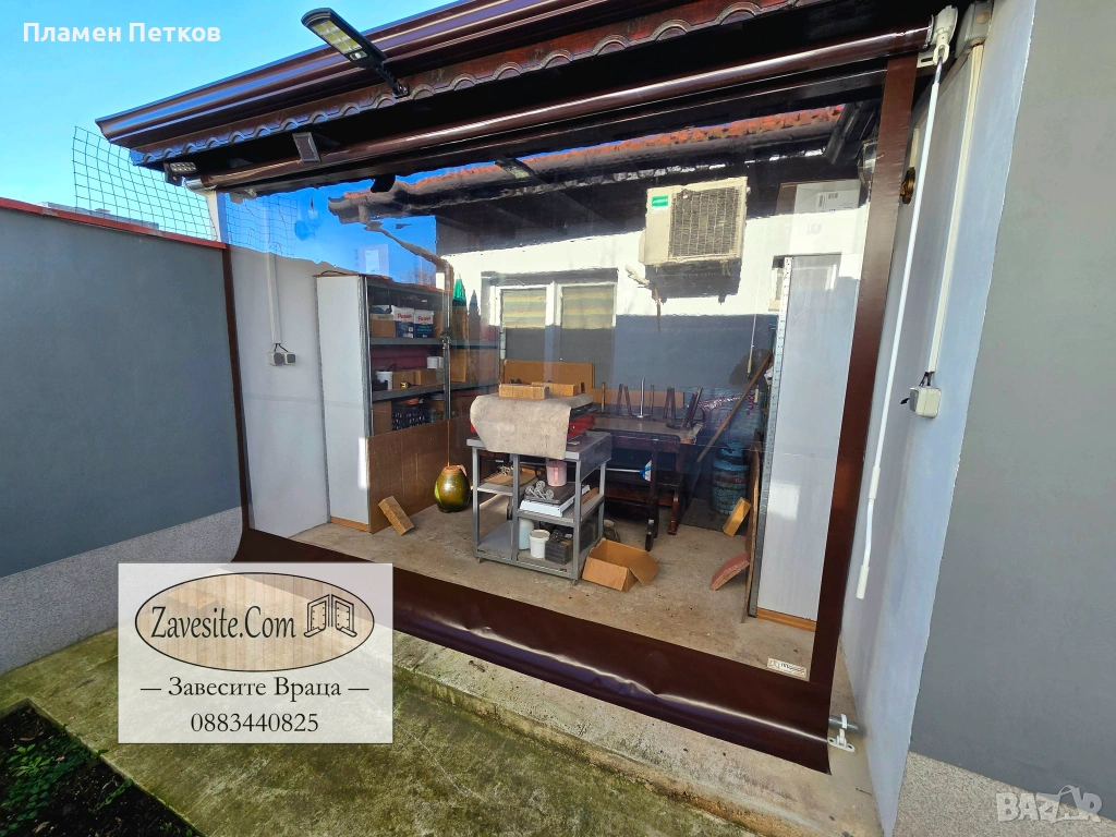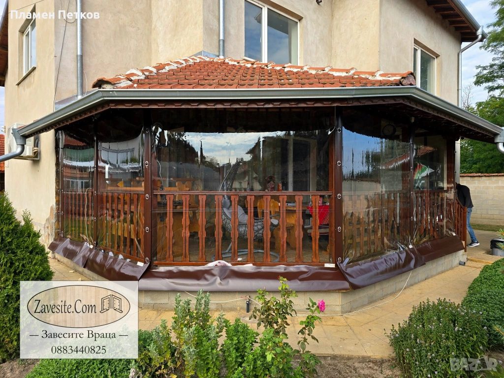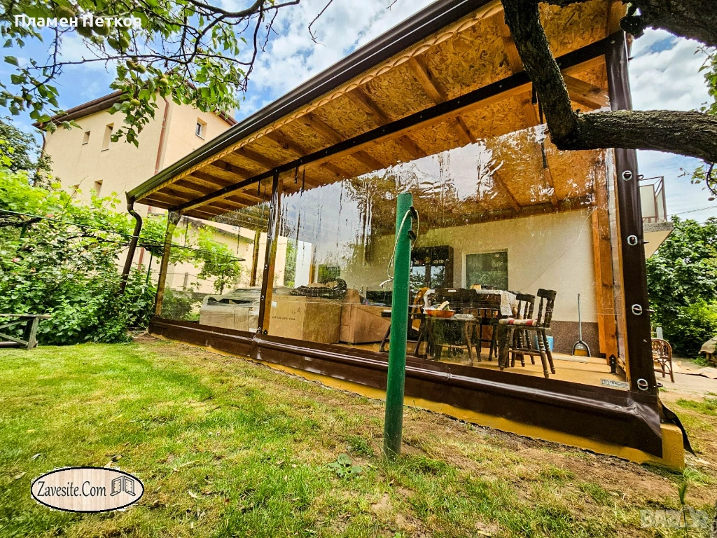 Изработка на Ветроупорни завеси, Врати за навеси, Беседки и Навеси!