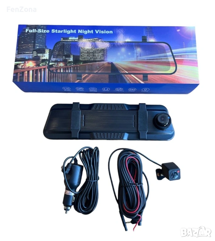 Видеорегистратор - огледало за автомобил с 10 инчов тъчскрийн и двоен запис