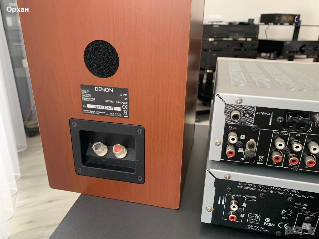 • Тонколони Denon SC-F107: Двулентови озвучителни тела с красив дървен финиш, които вадят изненадващо дълбок бас и детайлни високи честоти.
