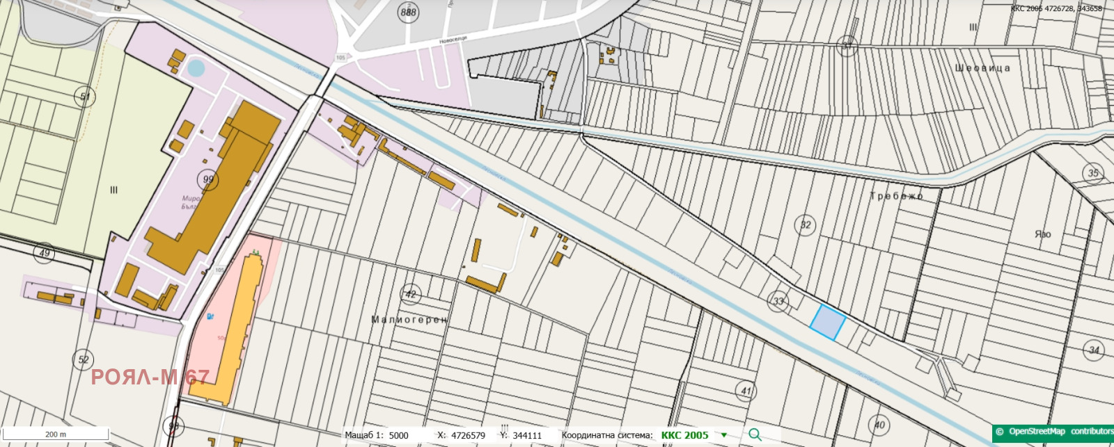 Роял-М продава земеделска земя кат.3 /ливада/ с площ от 2548 кв.м. в местност ТРЕБЕЖО с лице на асфалтов път.