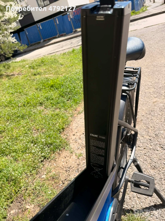-Механизма за заключване и отключване на батерията е повреден и изваден (не е краден). Батерията се заключва с права отвертка. Това не пречи на работата на мотора или батерията. Велосипеда може да се зарежда без да се вади батерията.