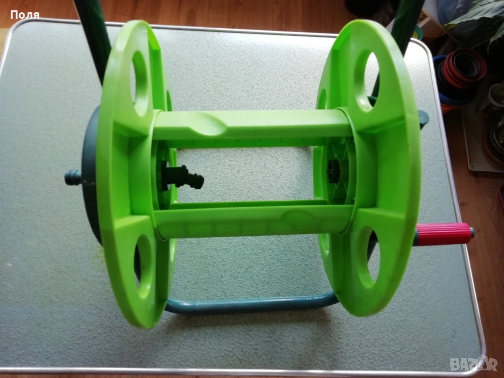 Макарата е сглобена, но не е употребявана. За маркуч 45 м. половин цол.