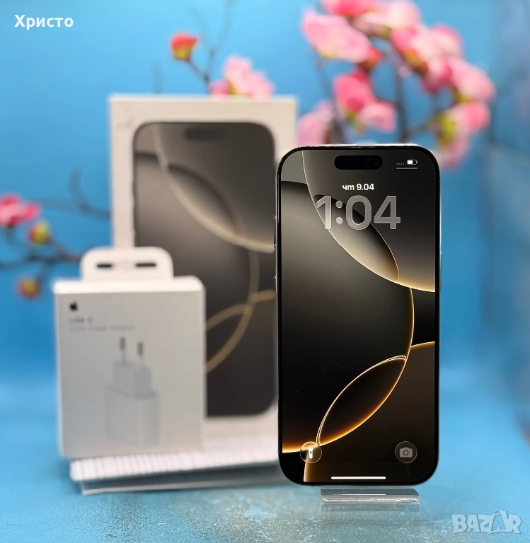 ГАРАНЦИОНЕН!!! Apple iPhone 16 Pro, 128GB, 5G, Natural Titanium + подарък оригинален адаптер Apple