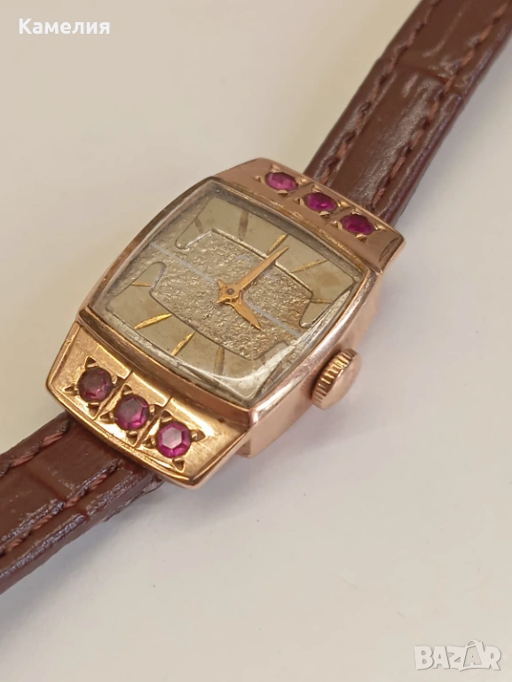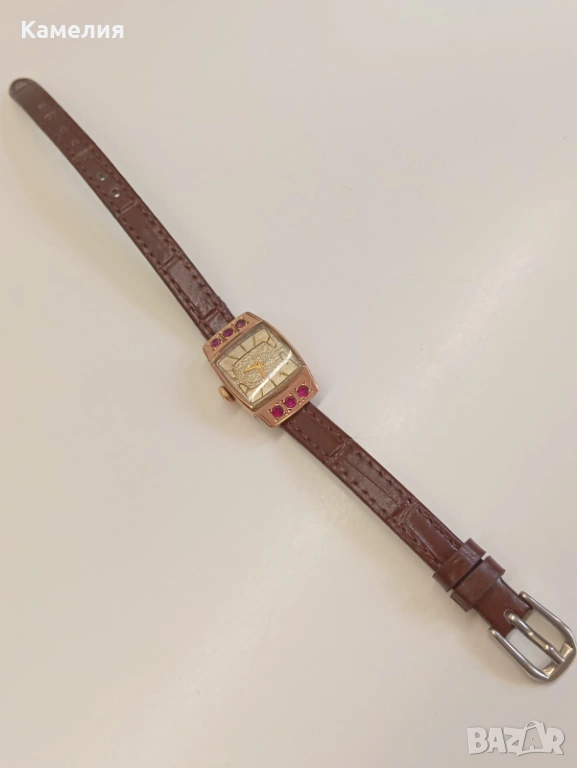 Руски (съветски) златен винтидж часовник с рубини Наири. Проба звезда 583. Ереван. Часовник работи. Грамаж 9,44 грам с механизм, злато примерно 5 грам.