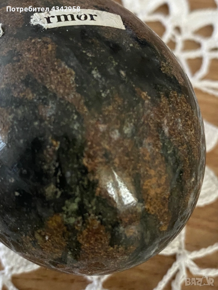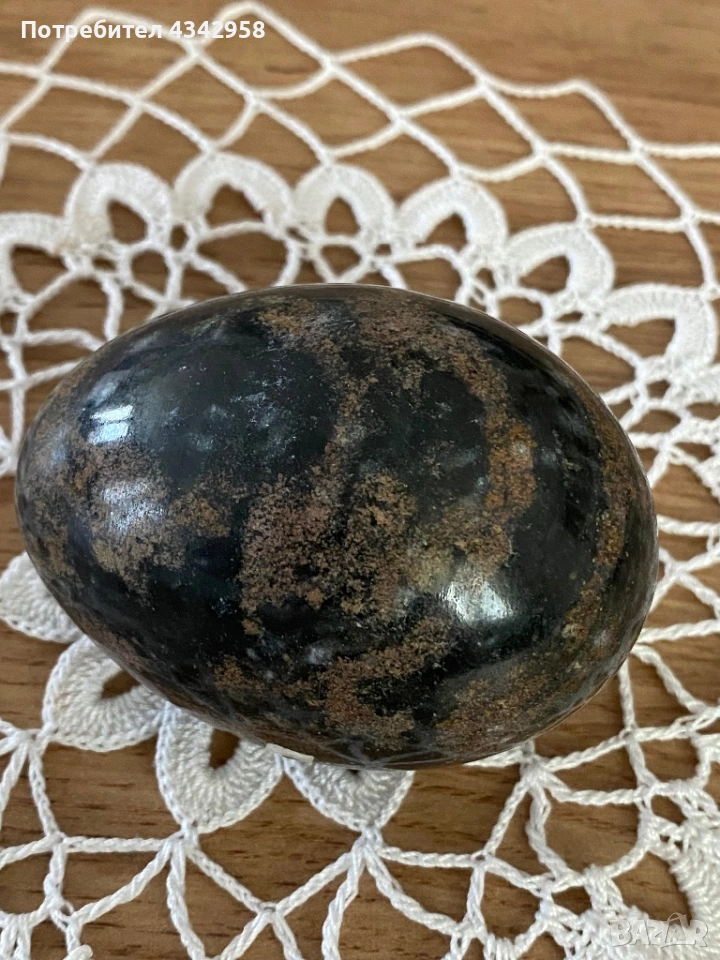 Продавам красиво декоративно яйце от естествен мрамор с уникален природен рисунък в тъмнозелени и кафяви нюанси. Всяко изделие е с неповторим десен.
