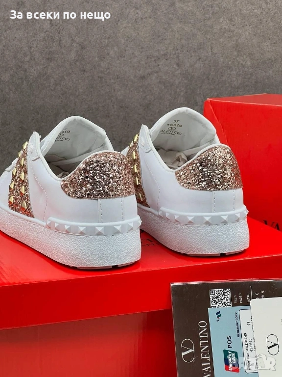 Valentino Дамски Бели Маратонки С Кристали👟Дамски Спортни Обувки С Камъни В Бял Цвят Код E1329 → Обява 54148599