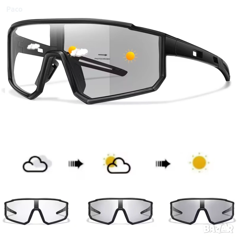 Външни фотохромни/рефлекторни модни очила за колоездене и риболов, бягане, плаж, туризъм, къмпинг, нов модел за ден и нощ. Очилата се затъмняват автоматично при силно слънце и изсветляват при каране в сянка и мрачно време.