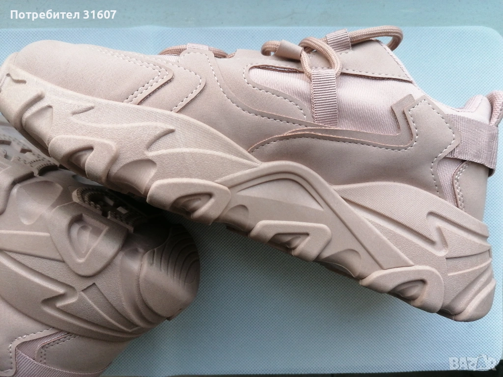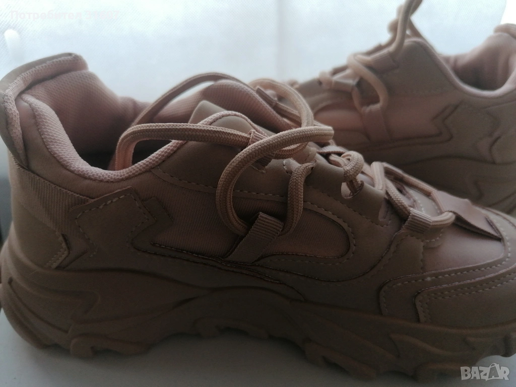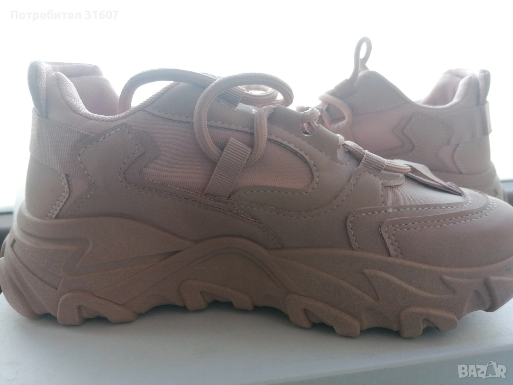 Модерни дамски маратонки с масивна подметка, идеални за ежедневието. Обувките съчетават комфорт и актуална визия, като цветът е много нежен, пепел от рози и пасва на почти всеки аутфит – от дънки до спортни рокли.