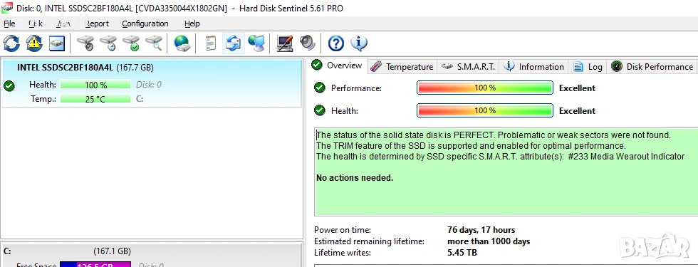 Батерия: Налична и в добро състояние, Windows отчита над 3 часа работа!