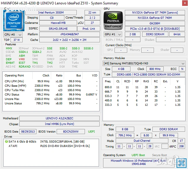 +Гаранция! NVIDIA GeForce 2GB / Лаптоп Lenovo IdeaPad Z510 Intel Pentium 3550M / 8GB RAM / 180GB SSD
