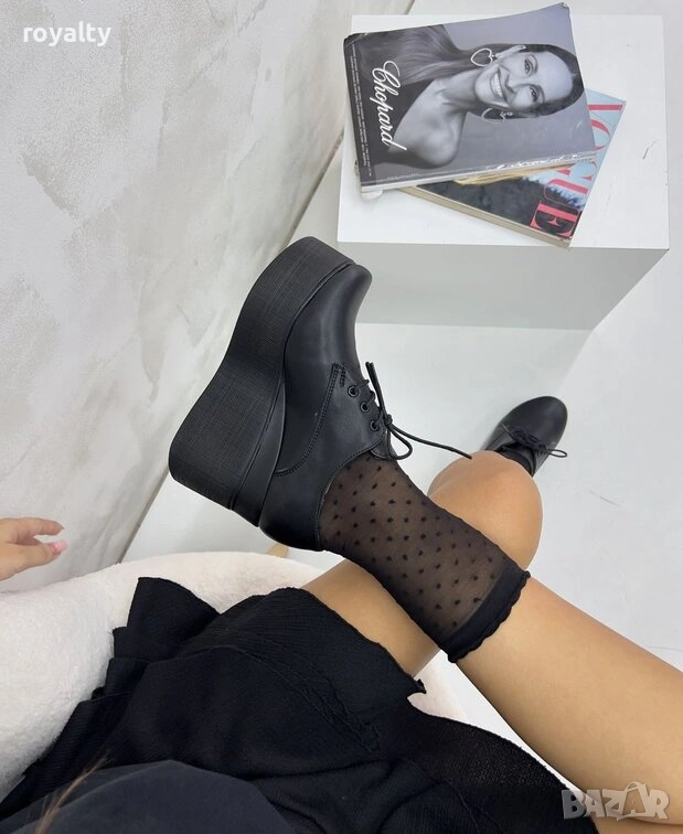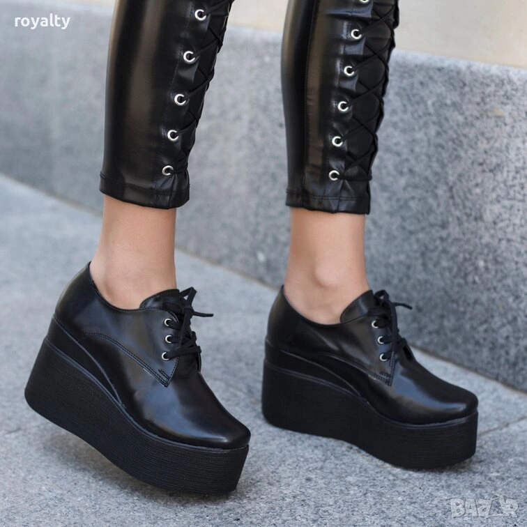 Обувки на платформа - черна кожа → Обява 54149170