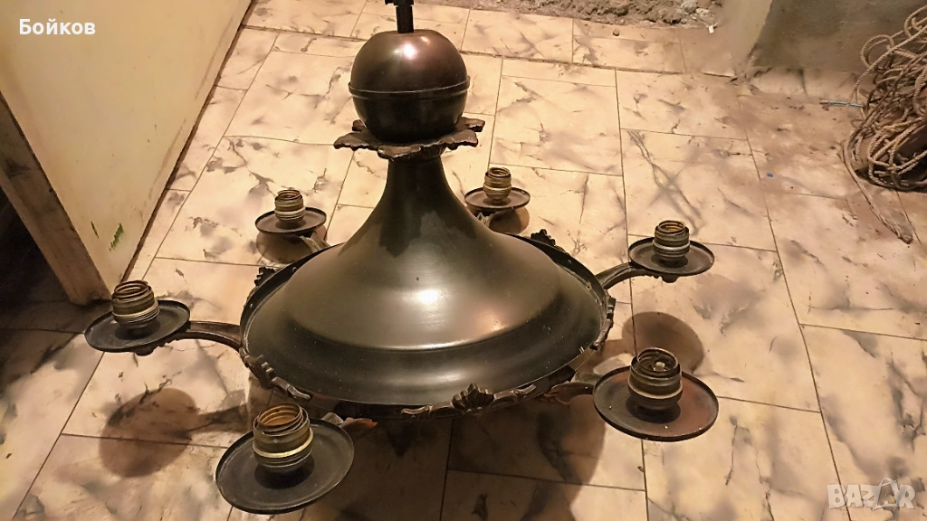 Масивен антикварен полилей от месинг/бронз – 6 светлини, винтидж стил, снимка 1 - Антикварни и старинни предмети - 54149227 Масивен антикварен полилей от месинг/бронз – 6 светлини, винтидж стил, снимка 2 - Антикварни и старинни предмети - 54149227 Масивен антикварен полилей от месинг/бронз – 6 светлини, винтидж стил, снимка 3 - Антикварни и старинни предмети - 54149227 Масивен антикварен полилей от месинг/бронз – 6 светлини, винтидж стил, снимка 4 - Антикварни и старинни предмети - 54149227 1/4