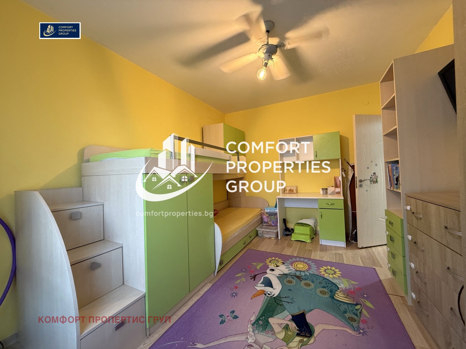 Апартамента се продава с цялостното си обзавеждане. Всички прозорци гледат на Изток към площадка с много зеленина.