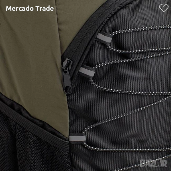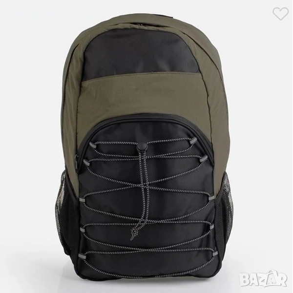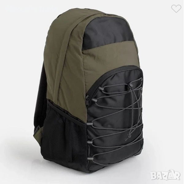 Спортна раница в цвят тъмнозелен и черно. Изработена е от лек и издръжлив текстил, има затваряне с детайли от светлоотразителна лента, където можете да съхранявате леки дрехи, както и странични мрежести джобове за бутилки. Разполага с отделение за лаптоп с мека подплата в основното пространство и преден джоб с бърз достъп до най-необходимото. Има текстилна дръжка за лесно пренасяне и регулируеми презрамки.