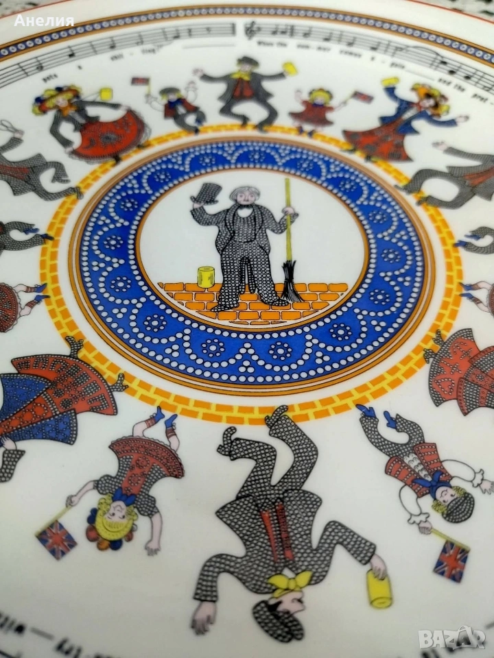 Производителят на чинията е Wedgwood, а авторските права са от 1977 г. на Pearl Binder.