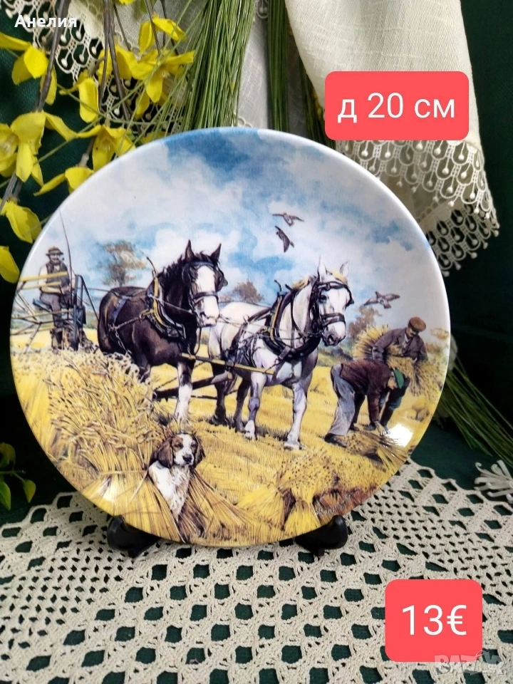 Колекционерска чиния Wedgwood от серията "Работни коне" (Working Horses), озаглавена "Жътварите" (The Harvesters).