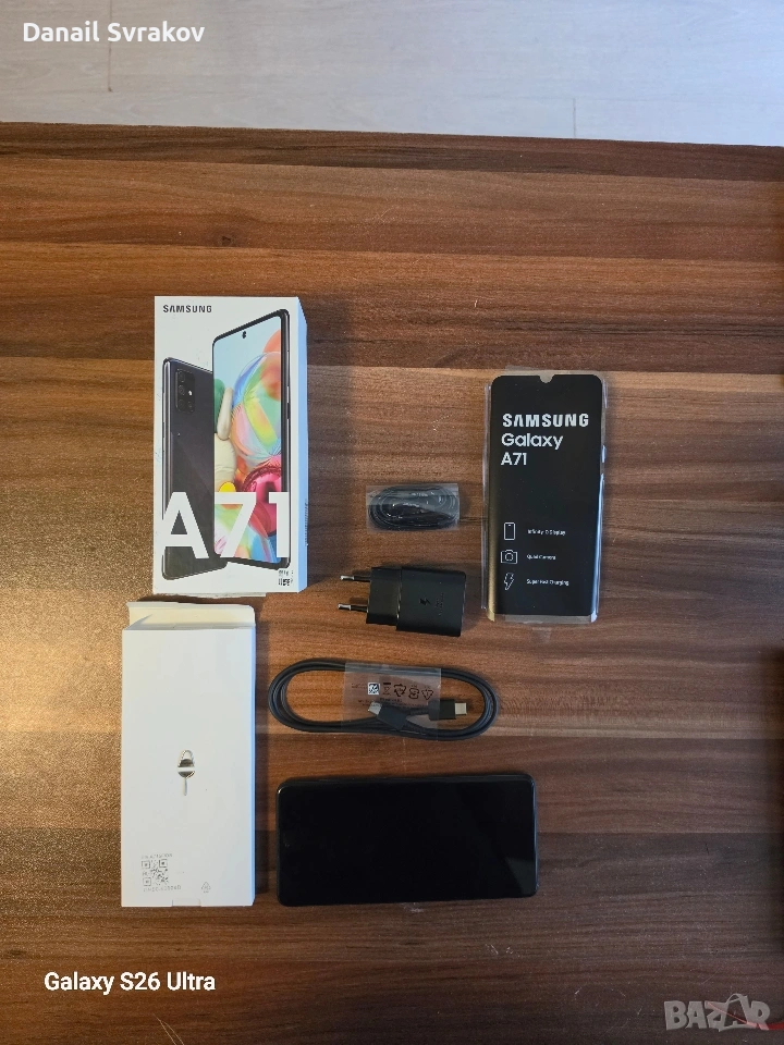Много запазен.Продава се с зарядно, кабел,слушалки,игла,3 калъфа.Телефона е с протектор(не стъклен).Версия на Андроид 13.Модел SM-A715F/DS.Батерия 4500mAh.RAM Plus6GB.128GB. Без забележки.2 карти.