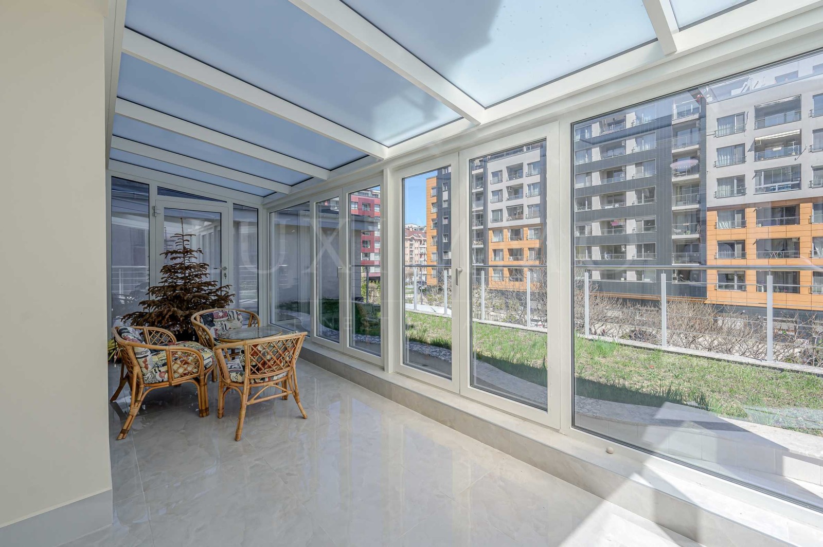 - Три тераси, като една от терасите е с площ 50 кв.м, оформена като зимна градина приятно продължение на вътрешното пространство.
