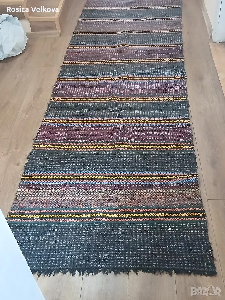 Идеално запазена вълнена черга ръчно изработена красиви цветове дължина 3.00 м ширина 96 см