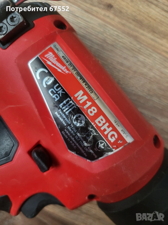 Пистолет за г въздух Miwaukee M18 BHG. Само тяло, но работи отлично. 70€ (без коментар!), снимка 1 - Други инструменти - 54149632 Пистолет за г въздух Miwaukee M18 BHG. Само тяло, но работи отлично. 70€ (без коментар!), снимка 2 - Други инструменти - 54149632 Пистолет за г въздух Miwaukee M18 BHG. Само тяло, но работи отлично. 70€ (без коментар!), снимка 3 - Други инструменти - 54149632 Пистолет за г въздух Miwaukee M18 BHG. Само тяло, но работи отлично. 70€ (без коментар!), снимка 4 - Други инструменти - 54149632 Пистолет за г въздух Miwaukee M18 BHG. Само тяло, но работи отлично. 70€ (без коментар!), снимка 5 - Други инструменти - 54149632 Пистолет за г въздух Miwaukee M18 BHG. Само тяло, но работи отлично. 70€ (без коментар!), снимка 6 - Други инструменти - 54149632 1/6