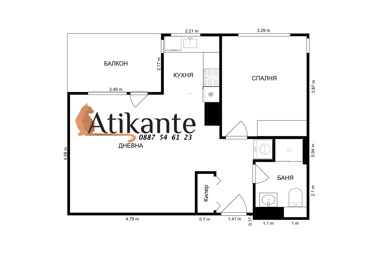 Вижте 3D виртуален оглед на https://bit.ly/4m6Q9Hg или на atikante.com