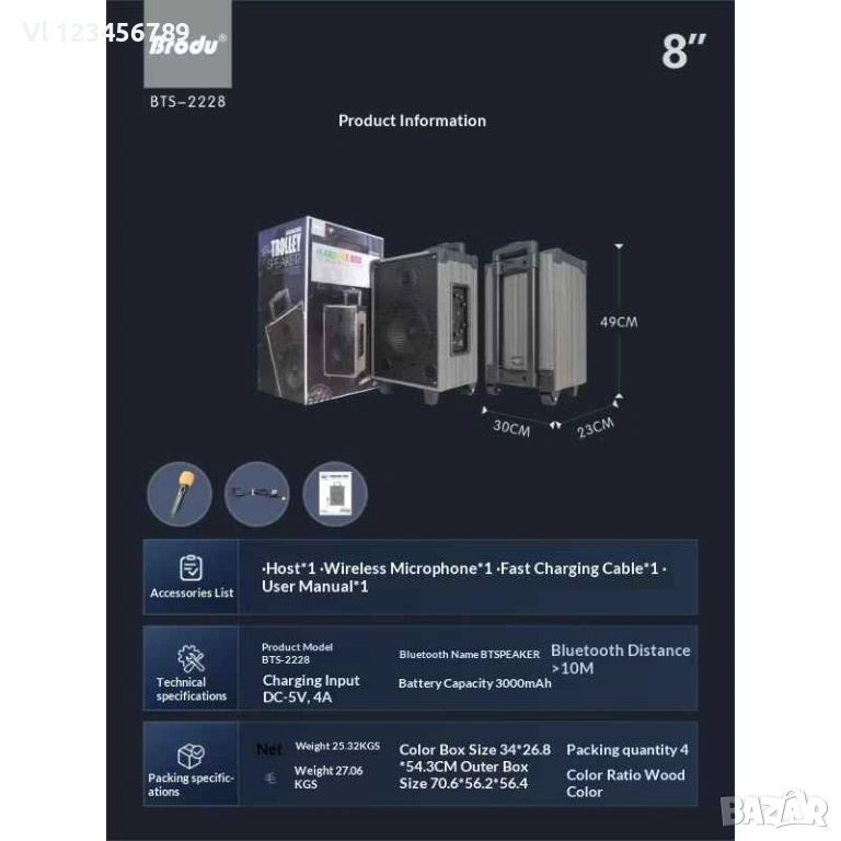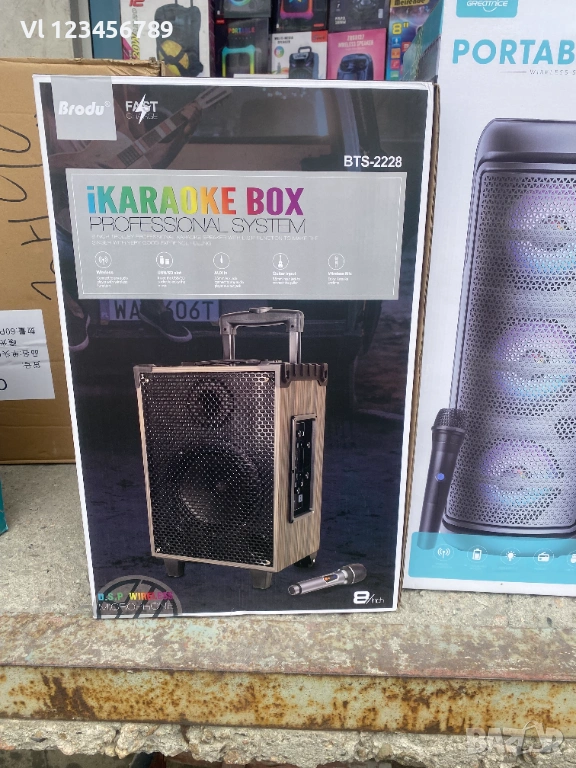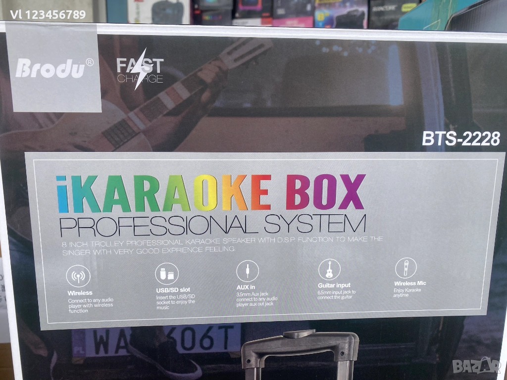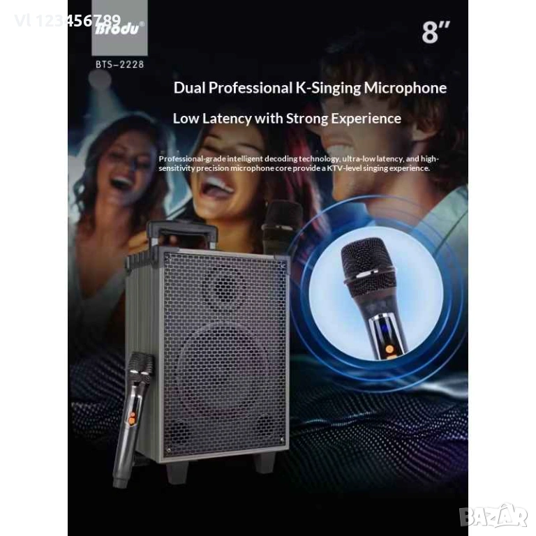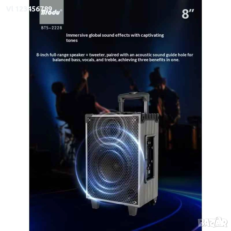 Висококачествен звук - дървена кутия, добър басов 8" говорител, качестен усилвател, без изкривявания.