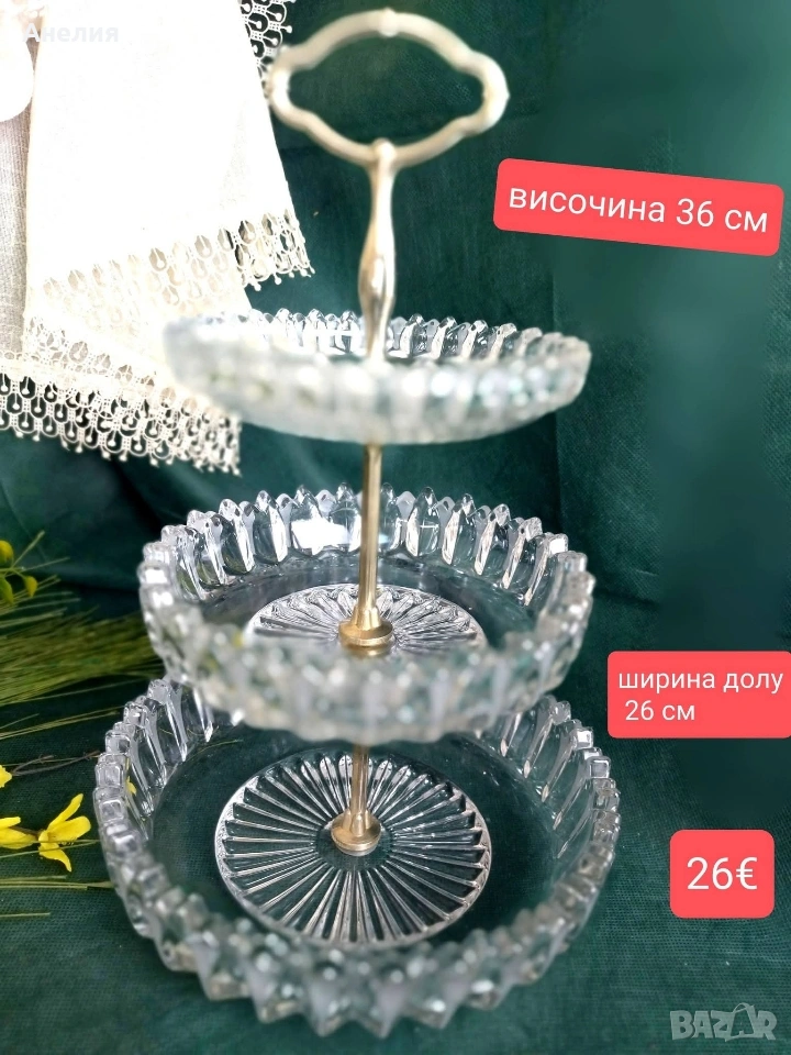 Триетажна поставка за сервиране, подходяща за сладкиши ,десерти, плодове... Дълбоки поставки.Релеф.