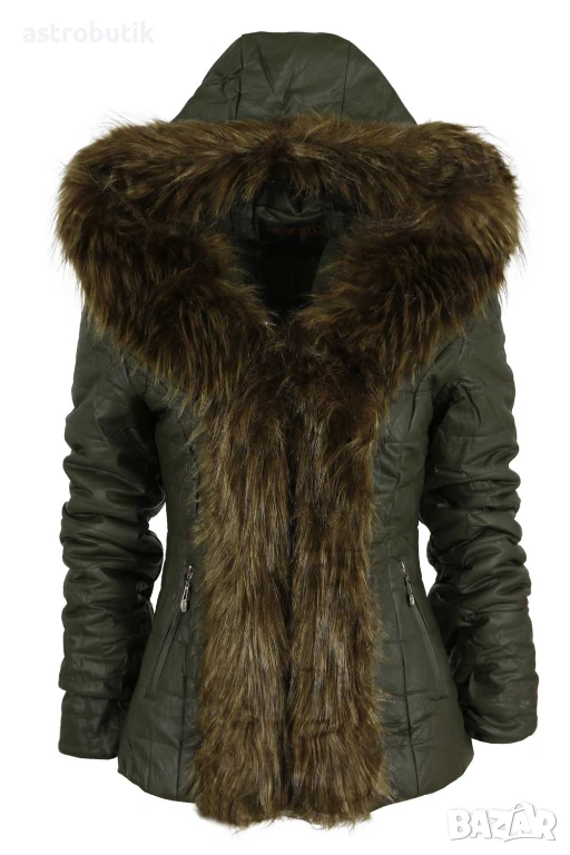 Подвижни пухени кантове – на качулката и по целия преден ръб; позволяват различни визии