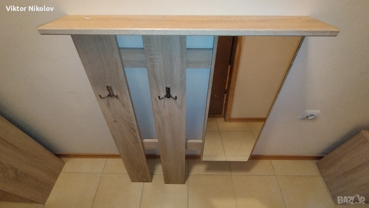 1. Огледало със закачалки и рафт