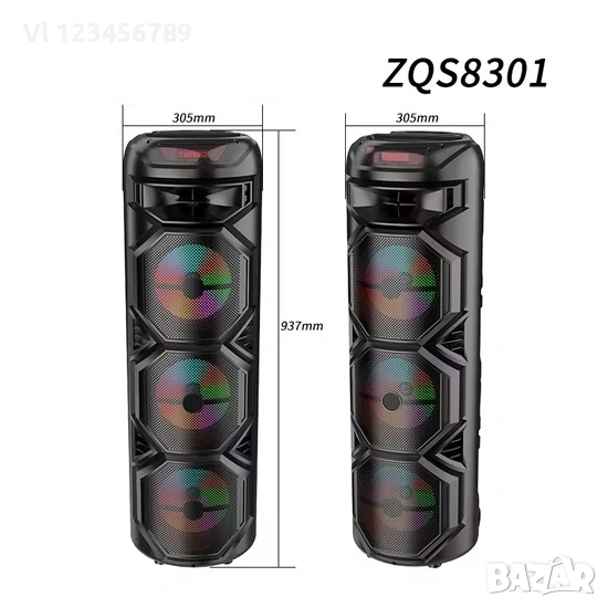 Мощна акумулаторна колонка 3х8" +LED; TF,MP3,USB; FM; BT модел ZQS8301