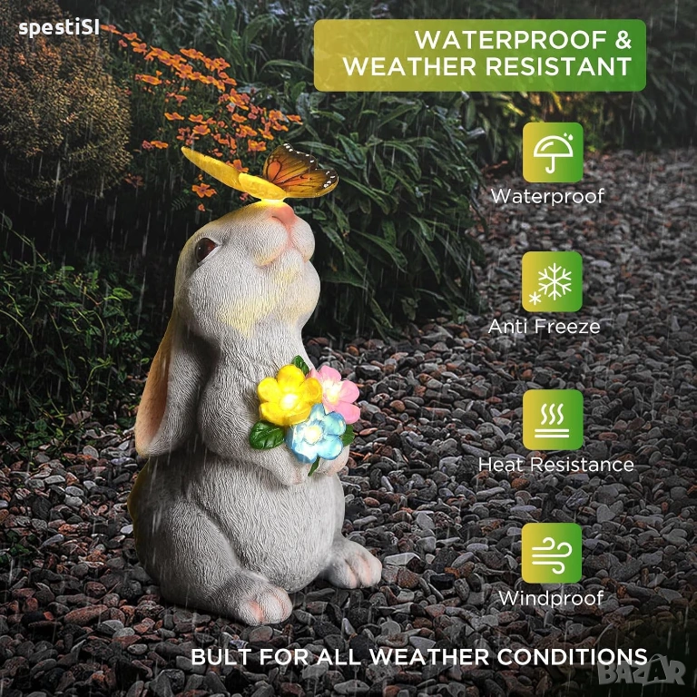 Издръжлива: Изработена от висококачествен полирезин, устойчив на дъжд, слънце и атмосферни влияния.