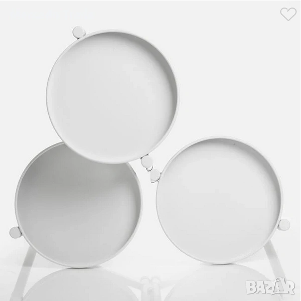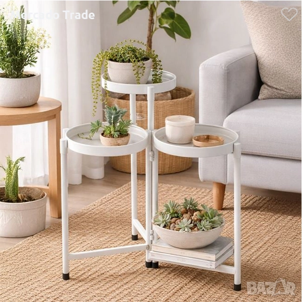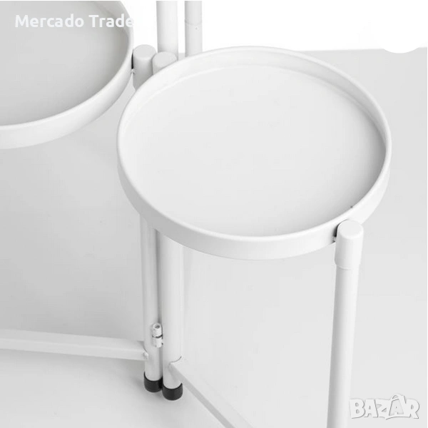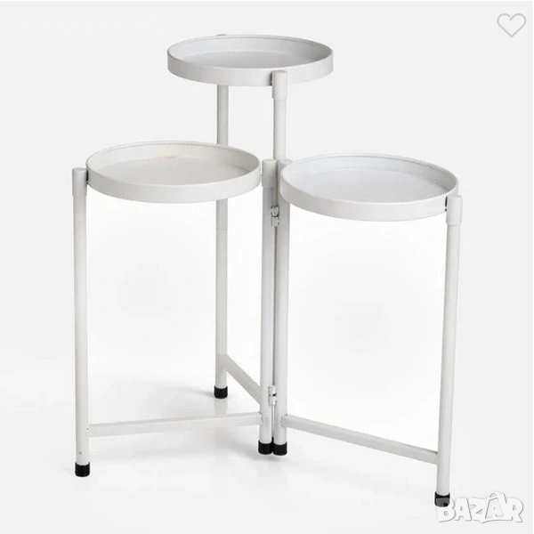 Метална поставка за цветя в бял матов цвят с 3 нива. Сглобява се много лесно и разполага с 3 метални диска Ø20x2cm за саксия или кашпа с растение и цвете. Може да се използва както с цвете, така и с декоративен елемент.