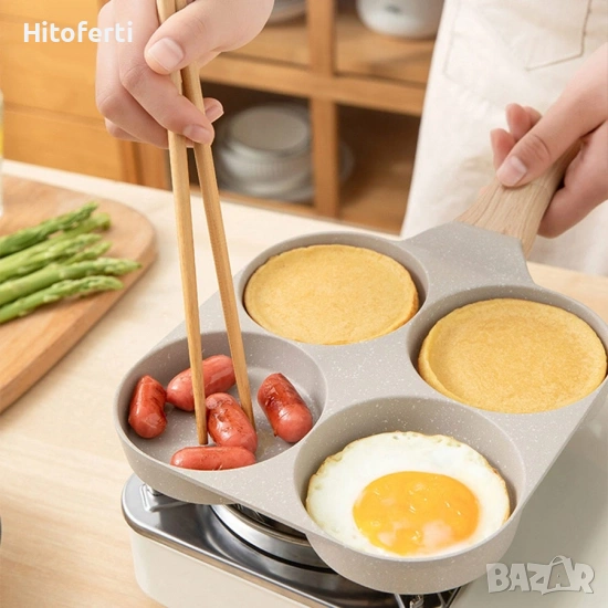 4 гнезда за едновременно готвене: Дизайнът с четири отделни гнезда ви позволява да приготвяте до четири мини палачинки, яйца или други малки закуски едновременно. Това спестява време и усилия, особено когато бързате.