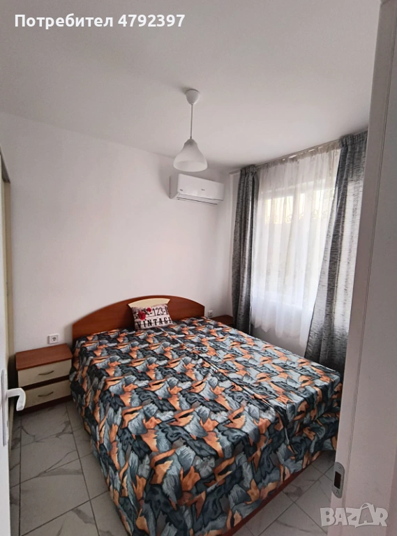 Уютна спалня обзаведена с удобно двойно легло, просторен гардероб с огледало, нощно шкафче и климатик за комфорт през всички сезони.