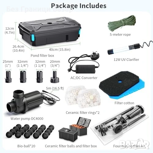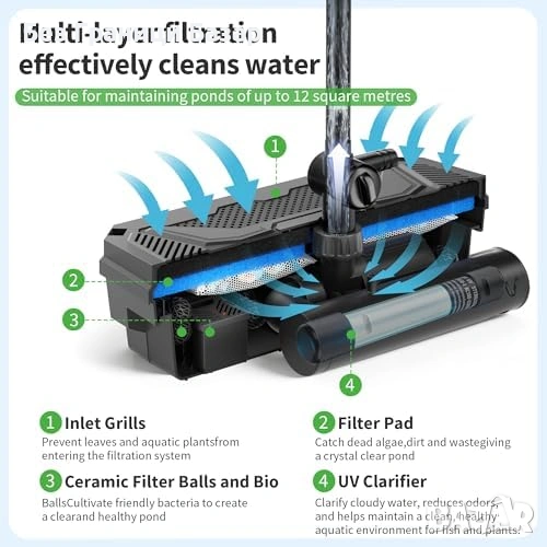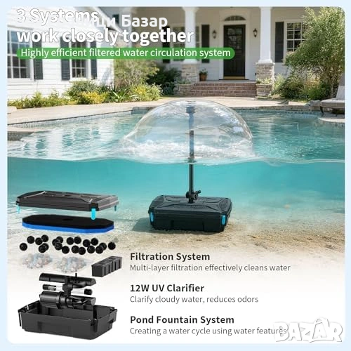 Пълна филтрираща система за градински езера и кои езера до 12 квадратни метра