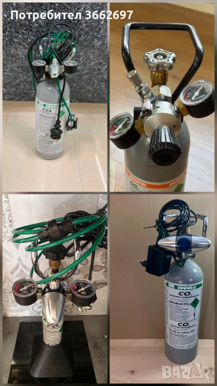 3. Бутилка Dennerle - 2 кг. (Има около 1 кг co2), Редуцир вентил Dennerle Quantun Evolution, Електромагнитен клапан Dennerle, Маркуч и възвратен клапан Dennerle. Подарък inline diffuser. Системата е произведвна в Германия. Цена: 200 евро.