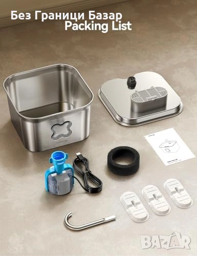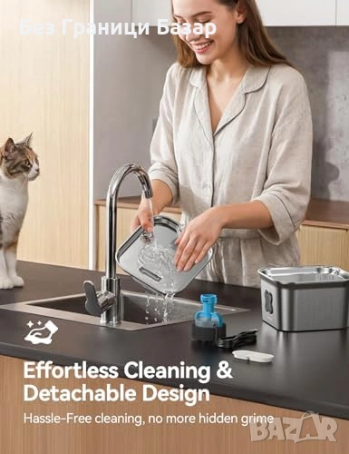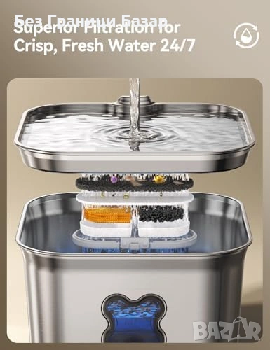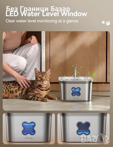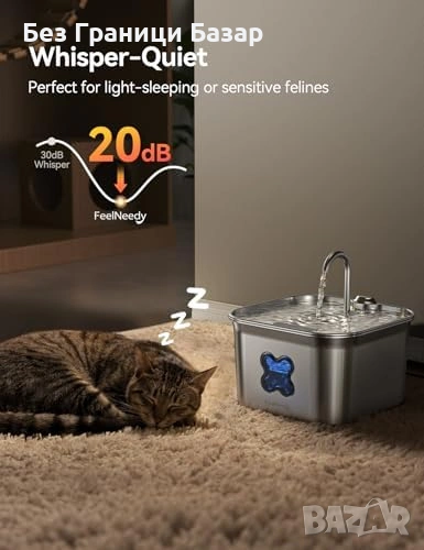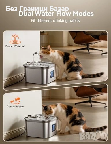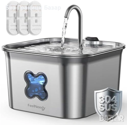 Нов Котешки фонтан 2.8L от неръждаема стомана с тиха помпа за вода котка