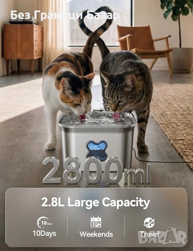 Котешки фонтан за вода с 2.8L вместимост, подходящ за една или няколко котки