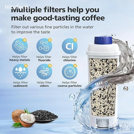 - 【Висококачествени материали】Водният филтър DLSC002 е изработен от висококачествен активен въглен от кокосови черупки и йонообменна смола. Смолата ефективно филтрира калция и други минерали във водата и я прави по-мека. Активният въглен ефективно филтрира хлора и други миризми от водата, омекотява водата и намалява остатъците, като например варовикови отлагания в тръбите на кафемашината.