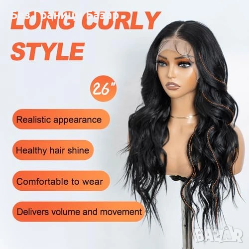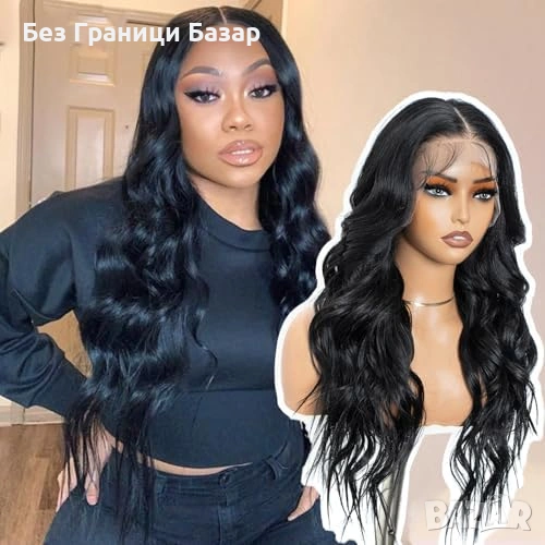 Дълга вълниста перука 26 инча в черен цвят