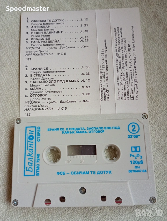 ФСБ - Обичам те дотук.Аудио касета от Балкантон.