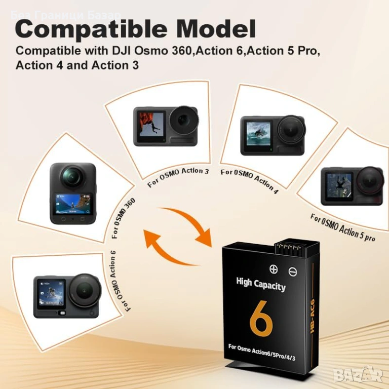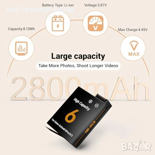 Комплект с 2 резервни батерии по 2800mAh за DJI Osmo Action 3, 4, 5 Pro, 6 и Osmo 360