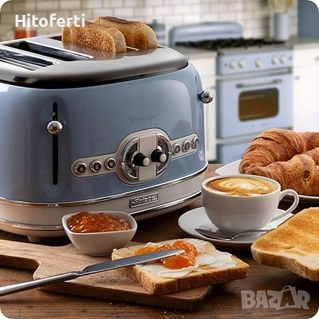 - 4 СЪВРЕМЕННИ ФИЛИИ: Винтидж електрически тостер има 4 отделения за хляб с отделни контроли за независимо запичане на филиите хляб на 6-те нива за печене