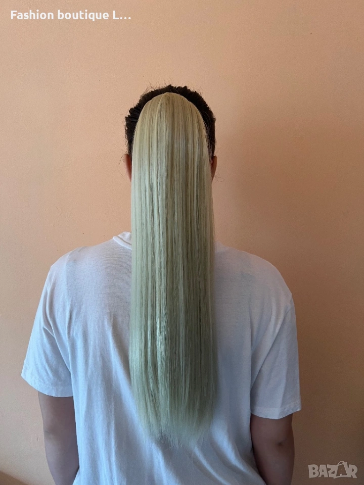 Сива нова коса на екстеншън тип конска опашка дължина 60 см. 100 грама може да се обработва топлинно → Обява 54151389