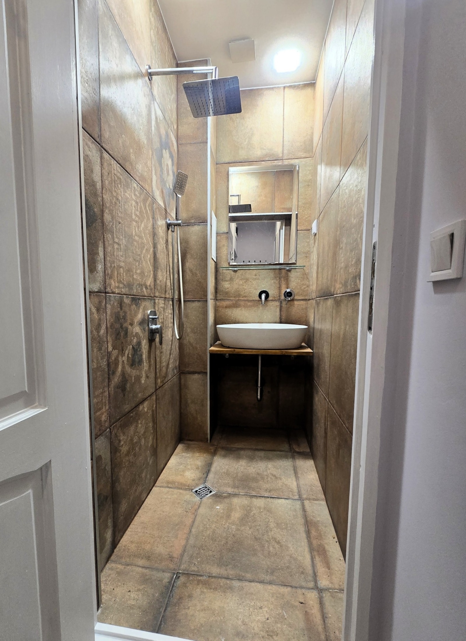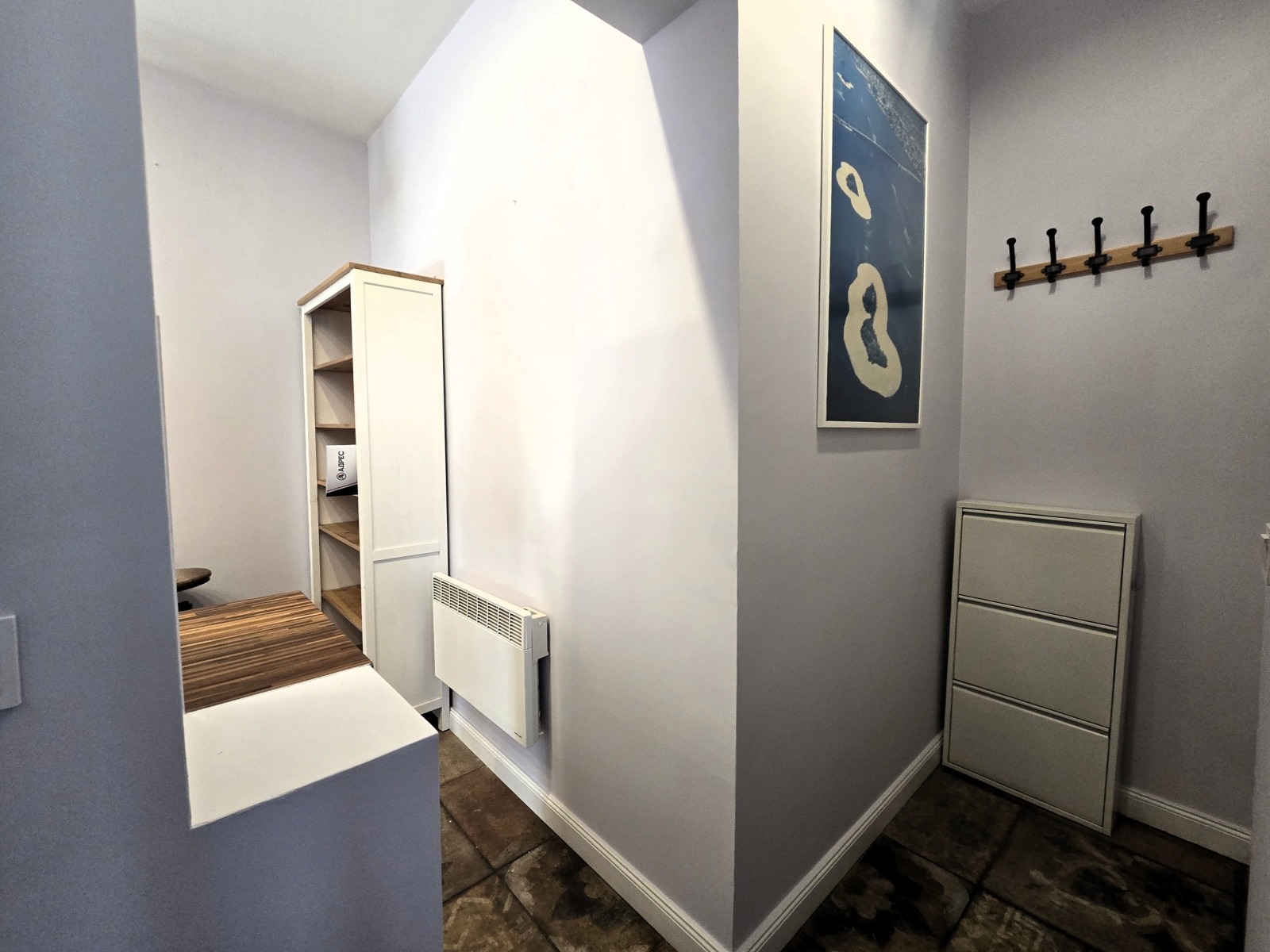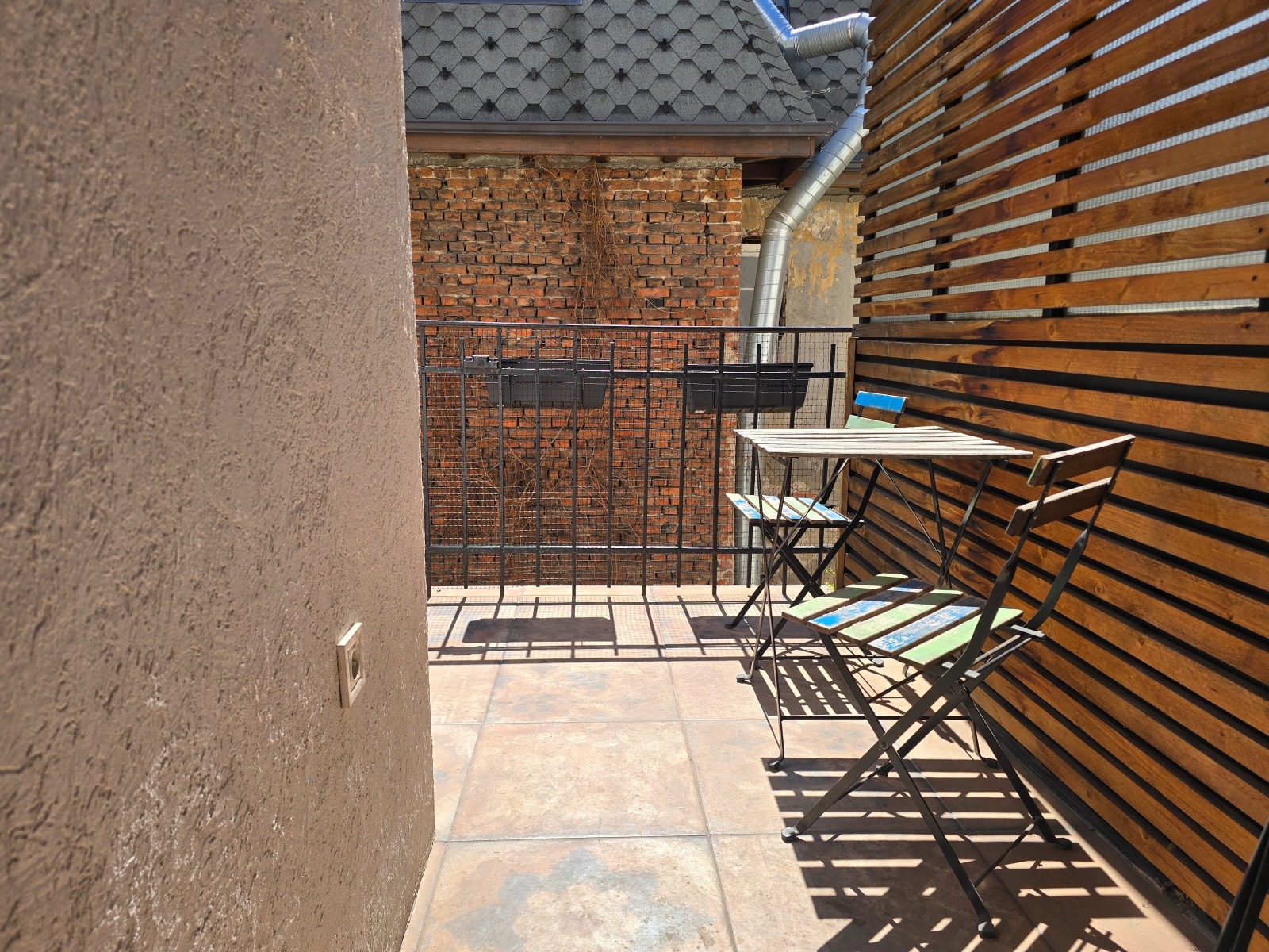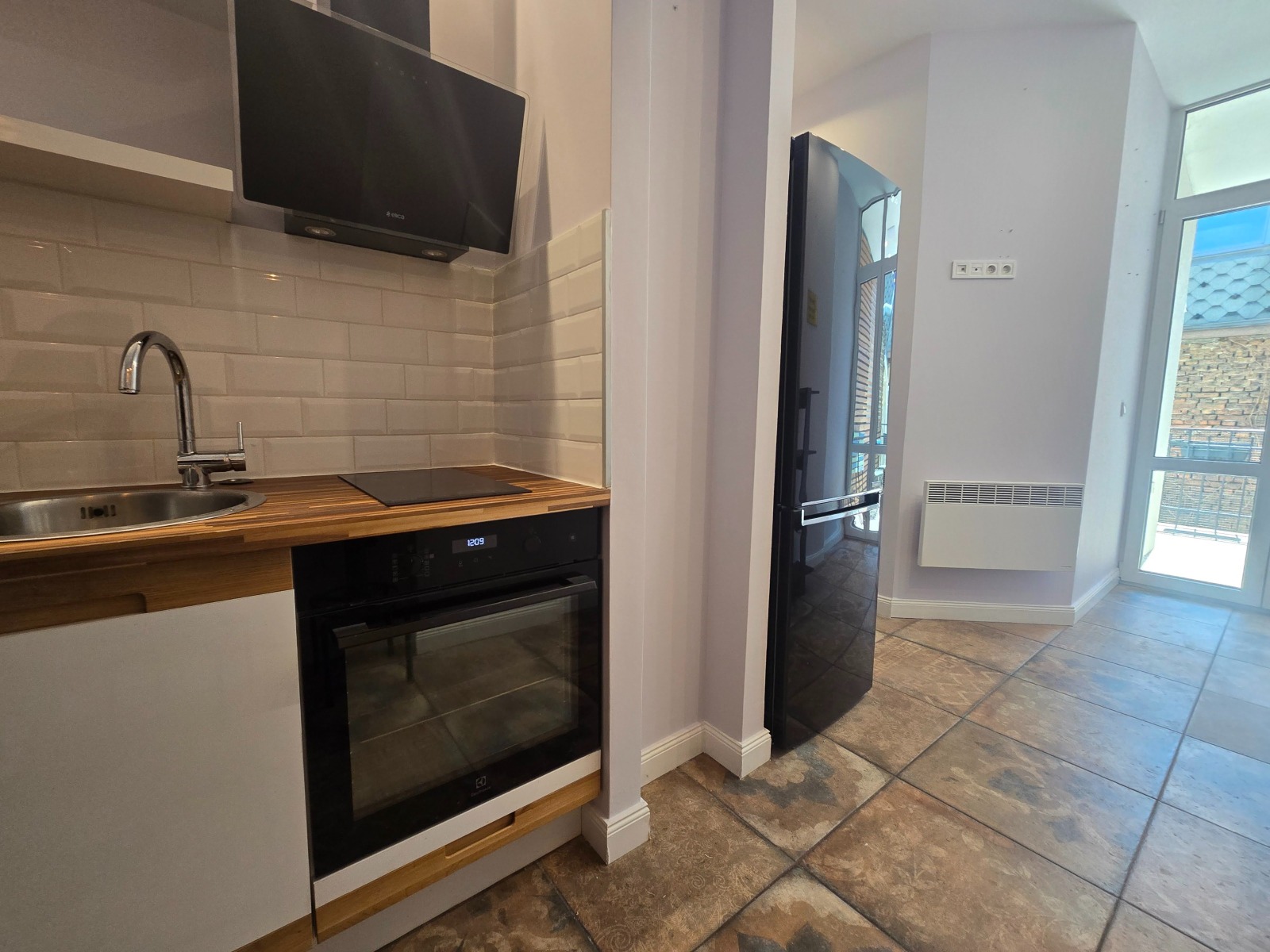 Модерно обзаведен двустаен апартамент след основен ремонт с ново обзавеждане в центъра на града. Пералня със сушилня, съдомиална, индукционни котлони, всичко необходимо за домакинсво от двама. Състои се от входно антре, всекидневна с трапезария и кухненски бокс, просторна спалня, кабинер, баня и тоалетна в отделни помещения, балкон към вътрешен двор. Апартамента има два входа в две различни стълбищни клетки.