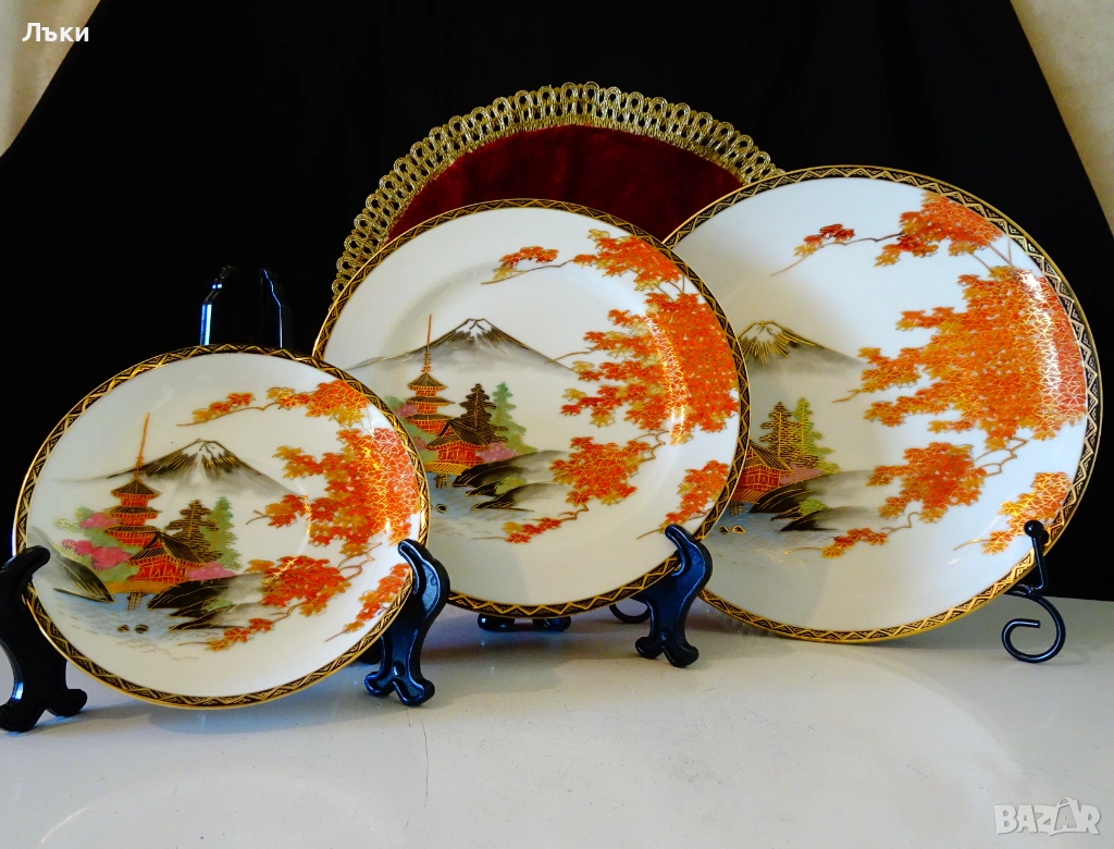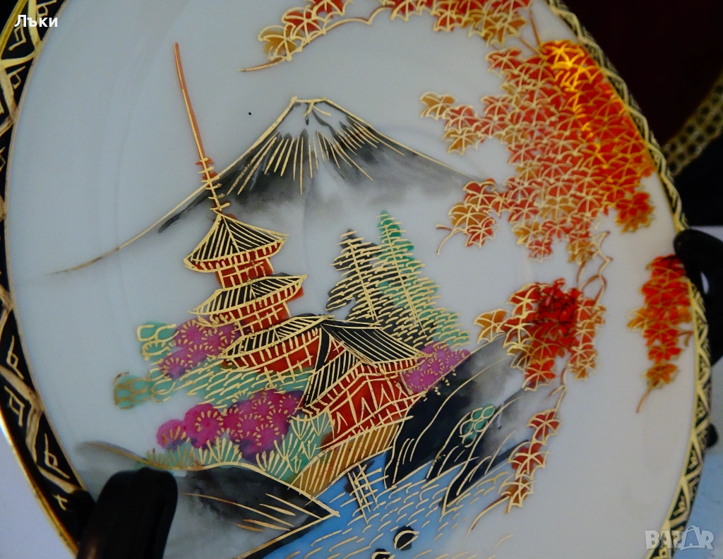 Чиния японски костен порцелан Satsuma Kazan,злато.
