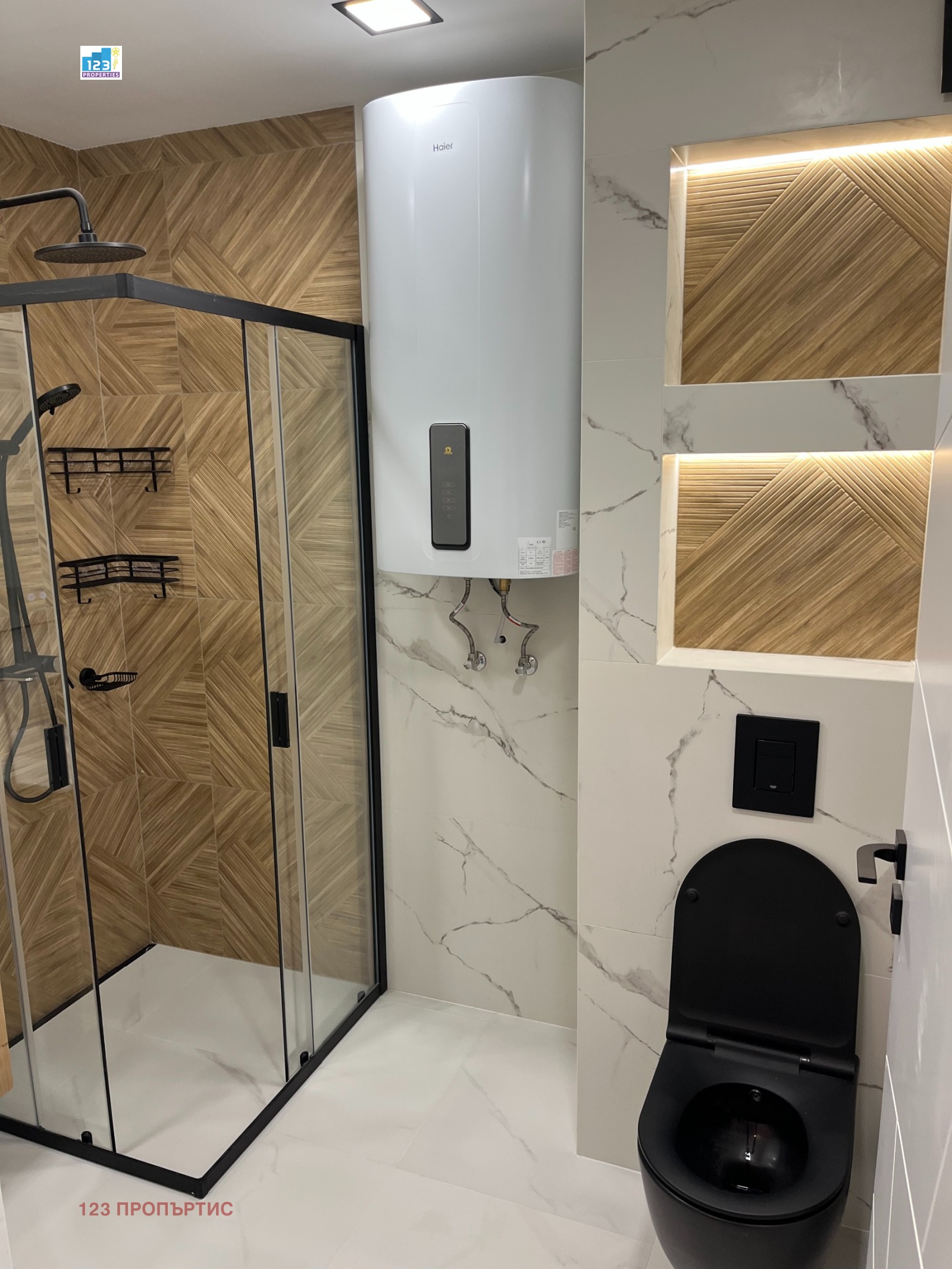 - банята е направена висококачествено, с душ кабина, шкаф с мивка и смесител, огледало, бойлер за топлата вода,