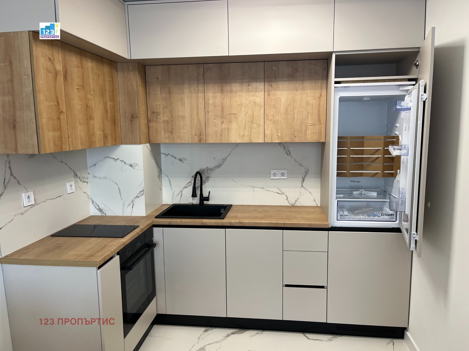 *** Обзавеждане - чисто нов апартамент с чисто ново обзавеждане очаква 1-вия си наемател. Има дневна (хол) с трапезария и кухненски бокс и хубава тераса. Кухнята е с висококачествени електроуреди, вграден хладилник и вградена миялна машина, мивка със смесител, фурна, керамичен плот с две зони, абсорбатор, трапезна маса с 4 стола, мека мебел с разтегаема част (за спане на гости), TV, климатици (в спалнята и в хола). Има и вградена пералня със сушилня в шкафа в коридора.