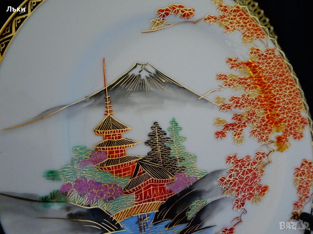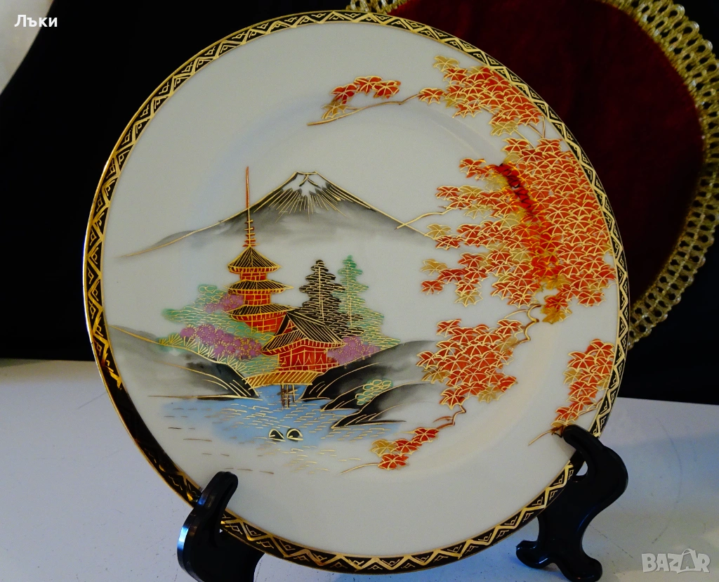 Чиния японски порцелан Satsuma Kazan 20 см.,злато.
